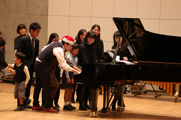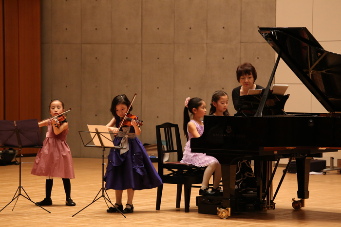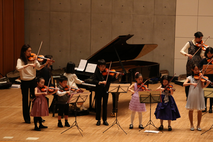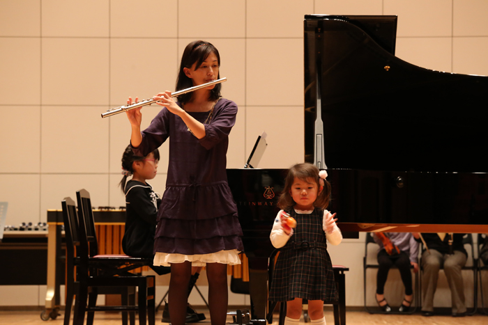 ナーサリークラス・リトミックサークルの1才児~のおもちゃのチャチャチャから始まり、終演の17時までの間、2人から約50人のアンサンブルまでみんな真剣でした。